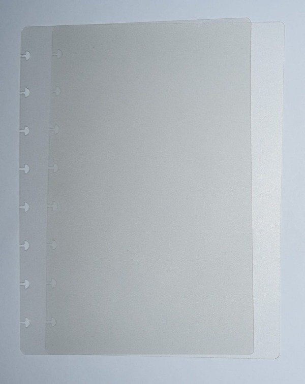 Estas tapas traslúcidas están hechas de plástico flexible y resistente, ideales para evitar que las hojas se doblen o se ensucien.